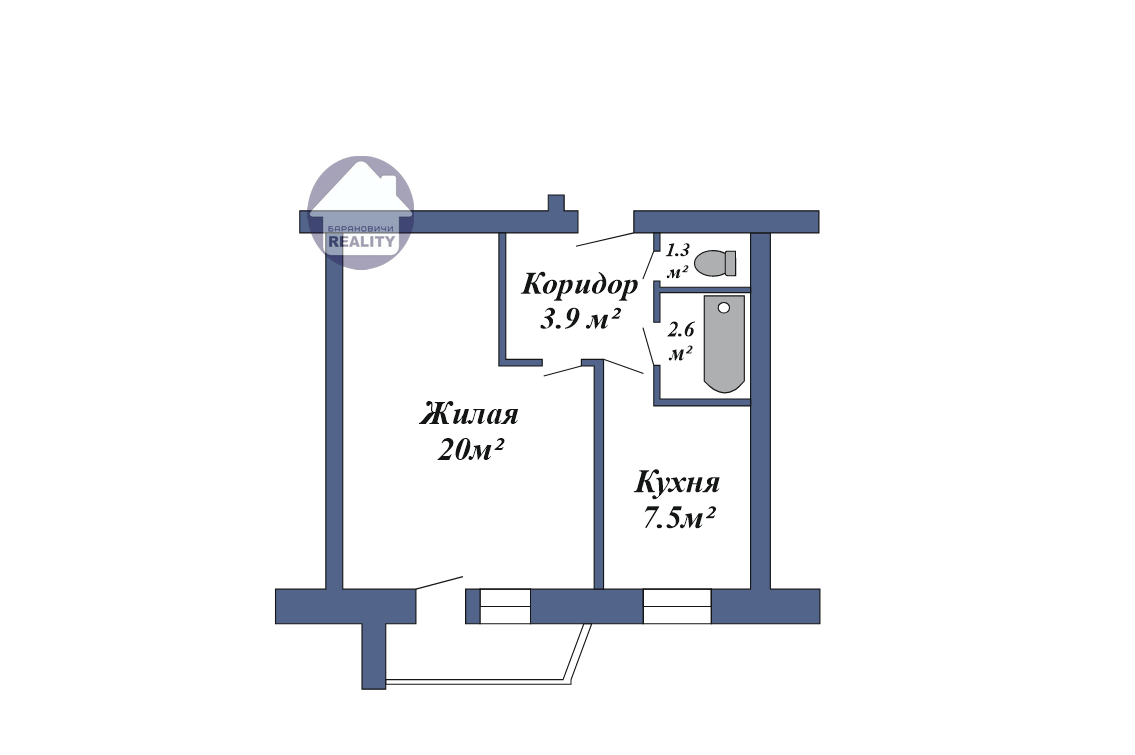 * Ванна 2,6 кв.м. – устанавливается стиральная машина;